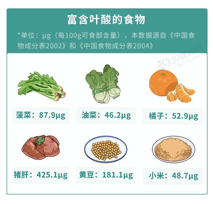 日常可适当多吃绿叶蔬菜、动物肝脏以及水果,这些食物内的叶酸含量丰富,对补充叶酸很有帮助。但对于一些本身吸收能力差或是有偏食、酗酒等问题的人,食补难以补充到足够剂量,可遵医嘱食用补剂。
